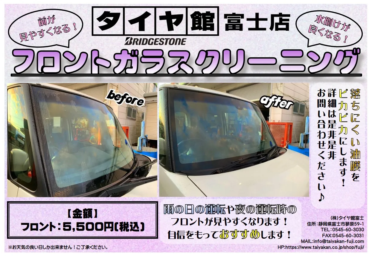 タイヤ館富士ではそんなフロントガラスも綺麗にしちゃいますよ☆彡