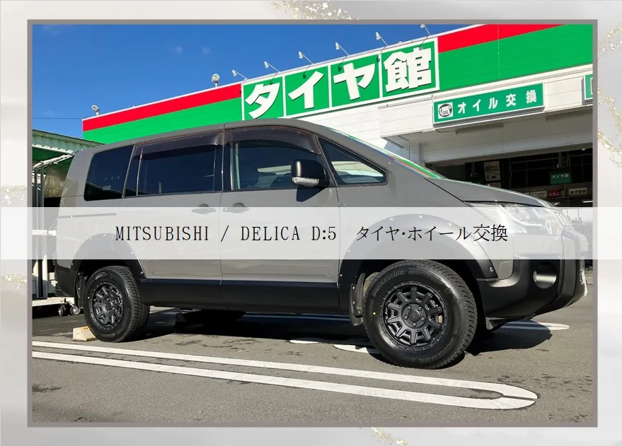 MITSUBISHI / DELICA D:5 タイヤ・ホイ... MITSUBISHI/DELICAD:5タイヤ・ホイール交換皆さんこんにちは(^^)/ミツビシ/デリカD:5のタイヤ・ホイール交換を行いました!タイヤ:BLIZZAKDM-V3215/70R16ホイール:PPXD10X16×7.0こちらのタイヤはSUV専…